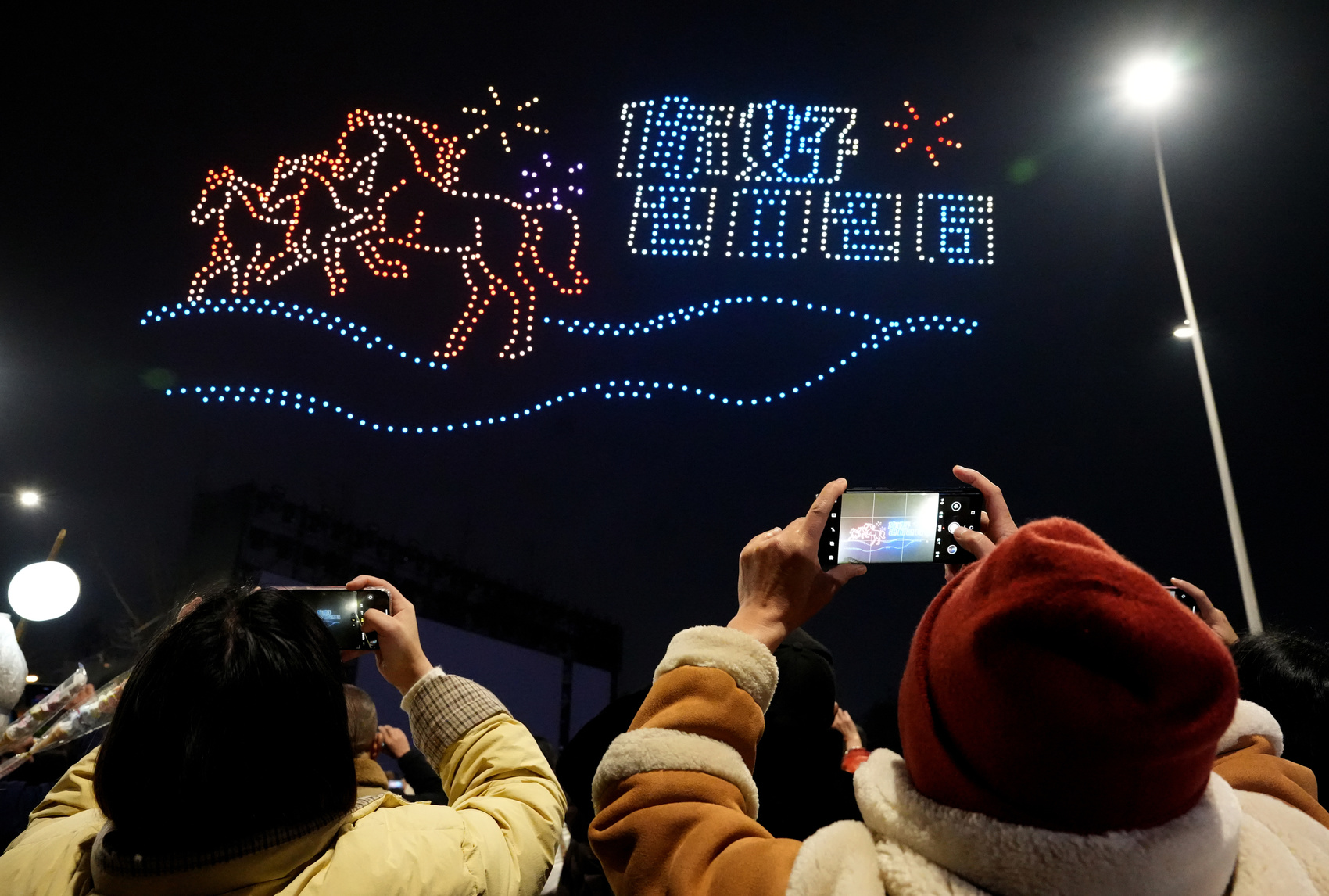 无人机表演,观众纷纷拍照留念。(周松林 摄)
