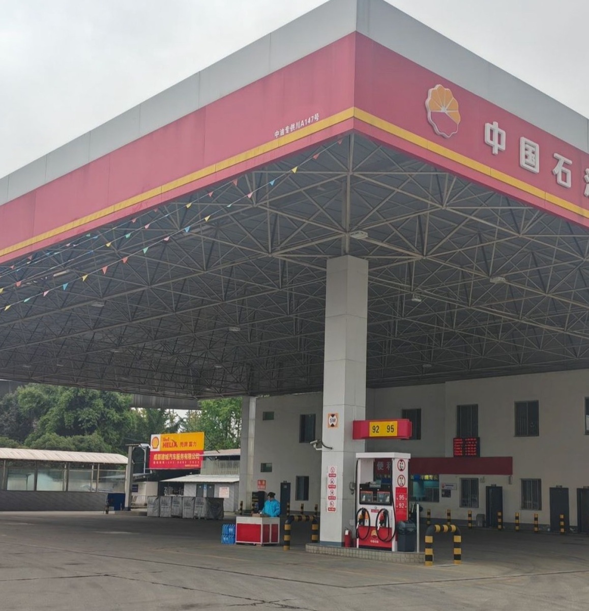 不过记者也发现差异:当天该站95号汽油单价7.42元/升,工作人员称会员日每升可减6毛钱,这一优惠在其他中石油加油站并不常见;此外,站点标牌角落处,标注有“中油专供川A147号”字样,这在“中石油”自营站中也不多见。