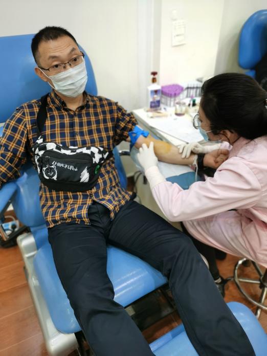 看到粗针管,他也曾感到害怕,“针能再细点就好了。”然而怕归怕,他依然毫不犹豫地献出了400毫升全血。