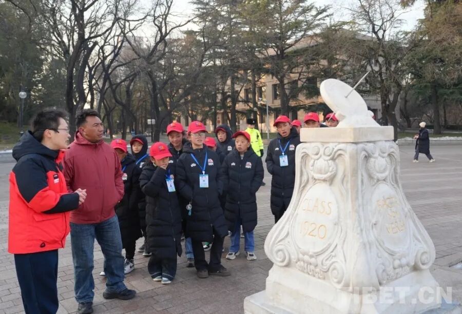 中国西藏网讯 “这是清华日晷,又被称为1920级日晷,它的作用和故宫太和殿前的日晷一样,都是用来表示时间的。”在清华大学礼堂前大草坪南端,讲解员正在为来自西藏自治区那曲市色尼区的青少年足球队研学团一行介绍一座宝贵的文物——清华日晷,“日晷基座上写着‘行胜于言’,是教育我们不管是做科学研究,还是体育锻炼,或者在任何工作岗位上做事情要脚踏实地,言出必行。”