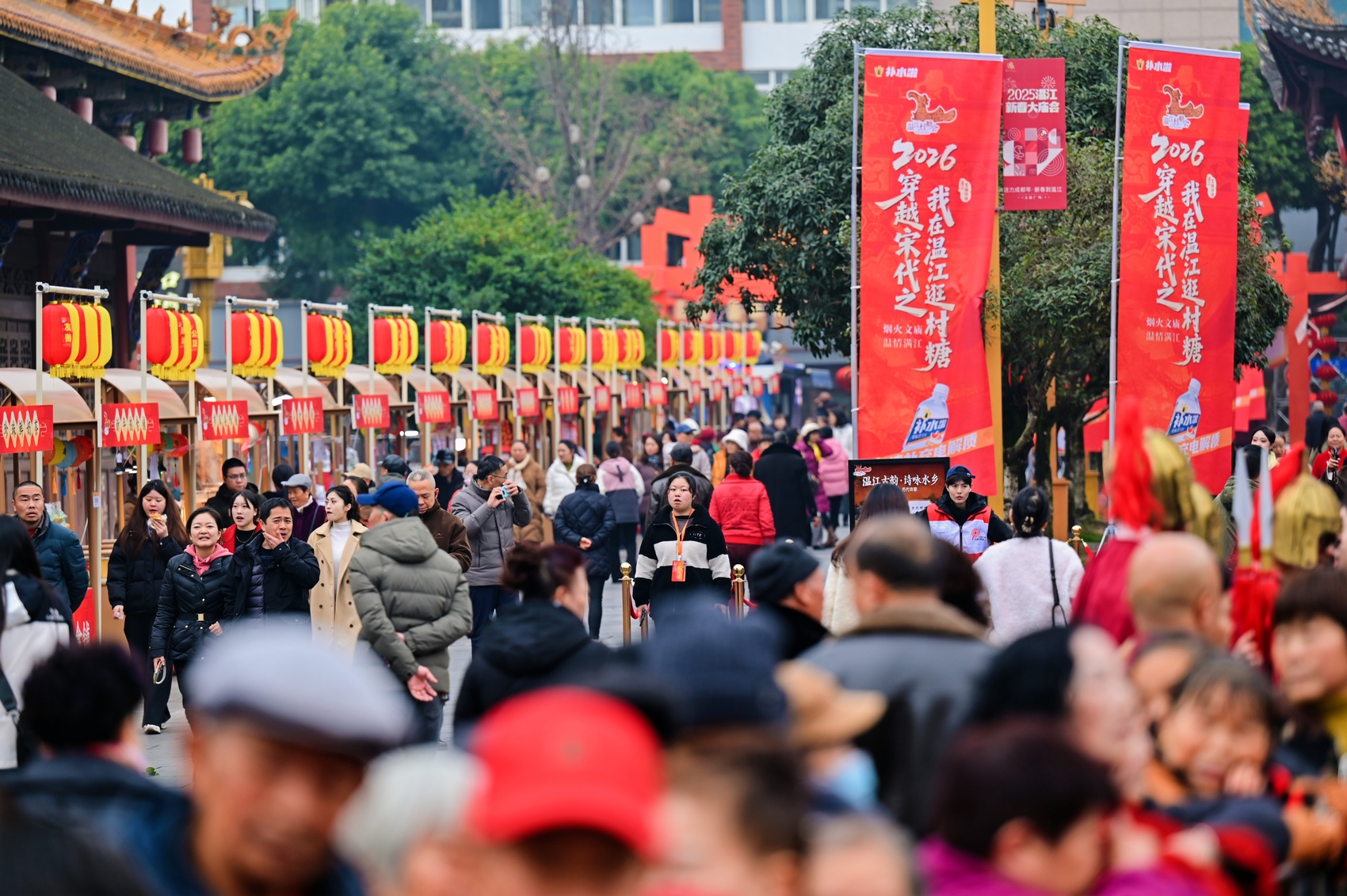 本次村糖会,温江区以全国重点网络微短剧《公元1023交子秘笈》全国首发地推活动为契机,举办“穿越宋代之我在温江逛村糖”活动,围绕“来温江·游文庙·逛村糖”主题,呈现武侠美食、宋代坊市、交子剧本杀、快闪游园、新年音乐会等内容,通过“融合”与“跨界”构建文商旅复合消费新生态。