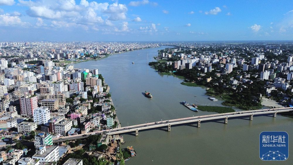 孟加拉国首都达卡拍摄的布里甘加河沿岸景观(无人机照片)。新华社发
