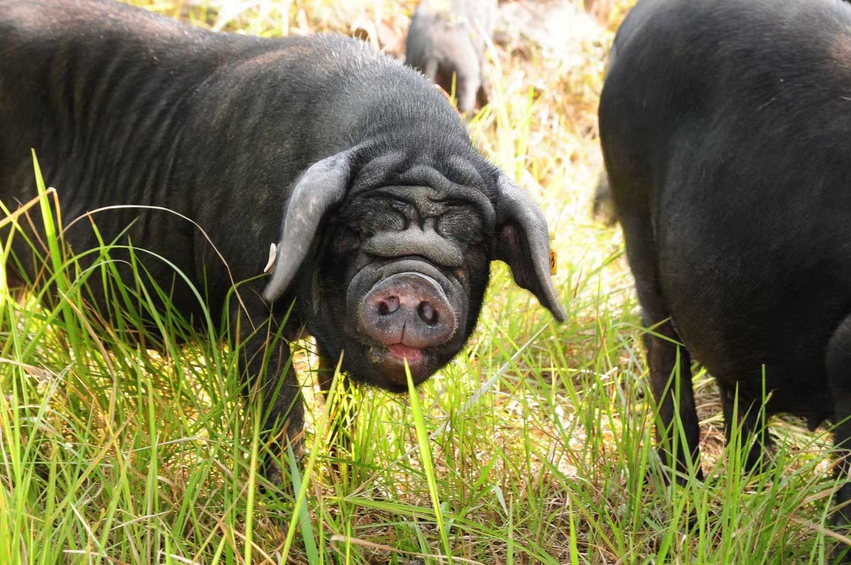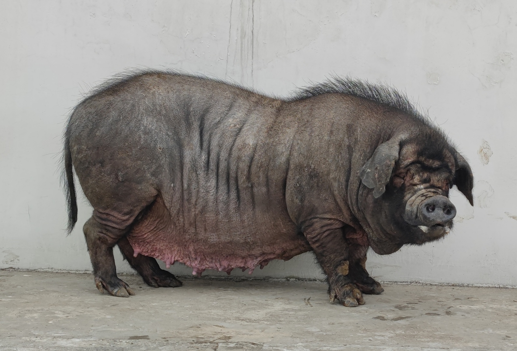 3、成华猪。成华猪是成都土生土长的黑毛猪,曾是成都猪肉市场的主力品种,也是回锅肉的“好搭档”。成华猪具有全身黑毛、四肢短小、体型膘肥等特点。成华猪主要分布于新都区、金堂县等地。据统计,2024年,成都地区成华猪出栏1万余头,其中,能繁母猪存栏1000余头。