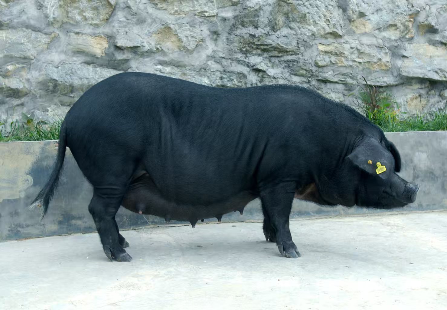 4、雅南猪。雅南猪是四川省地方优良品种,已有2000余年饲养历史。雅南猪全身被毛黑色,体型中等,体躯较长,体质强健,结构紧凑,额部有顺“八”字或倒“八”字形浅皱纹,具有乳头数多储脂能力强、配合力好等优点。雅南猪主要分布于成都邛崃市等地。据统计,2024年,雅南猪出栏1万头,其中,能繁母猪存栏500余头。