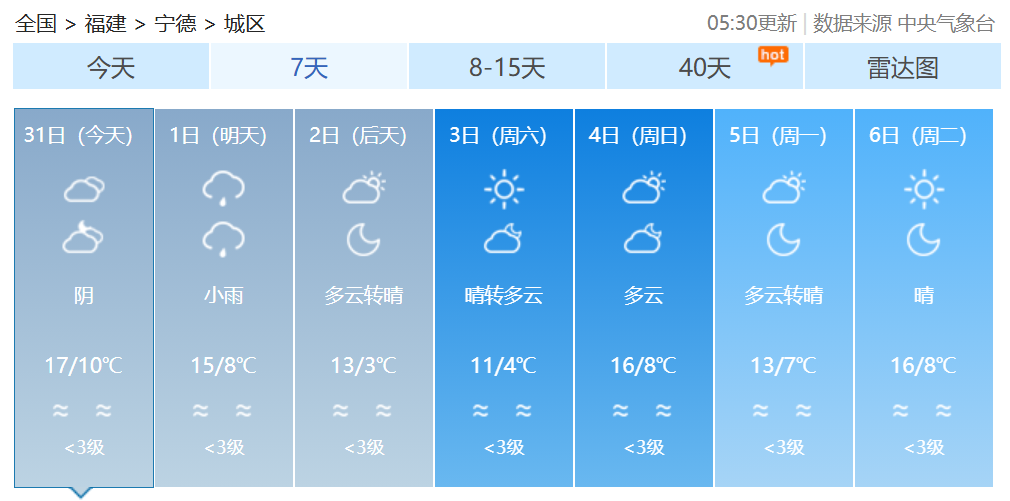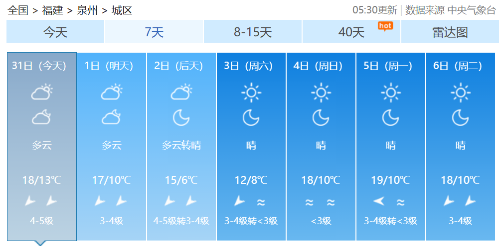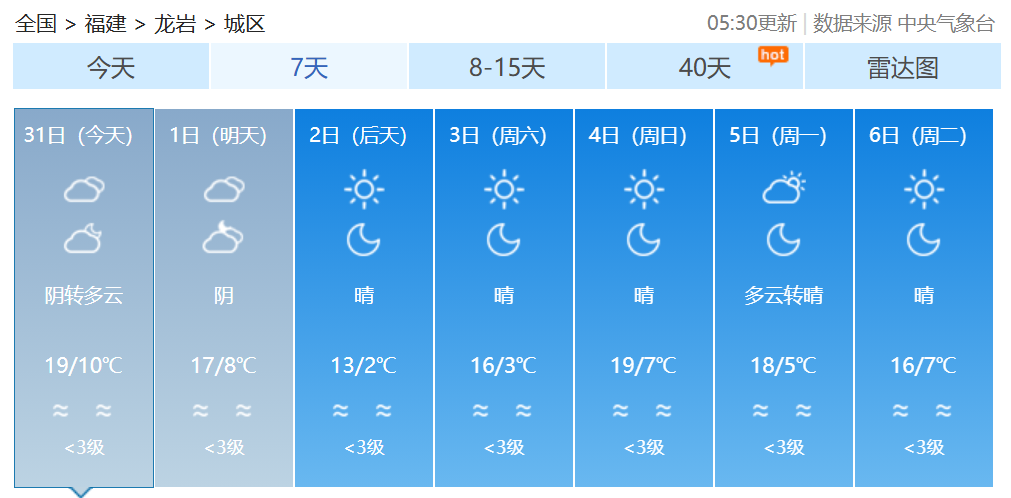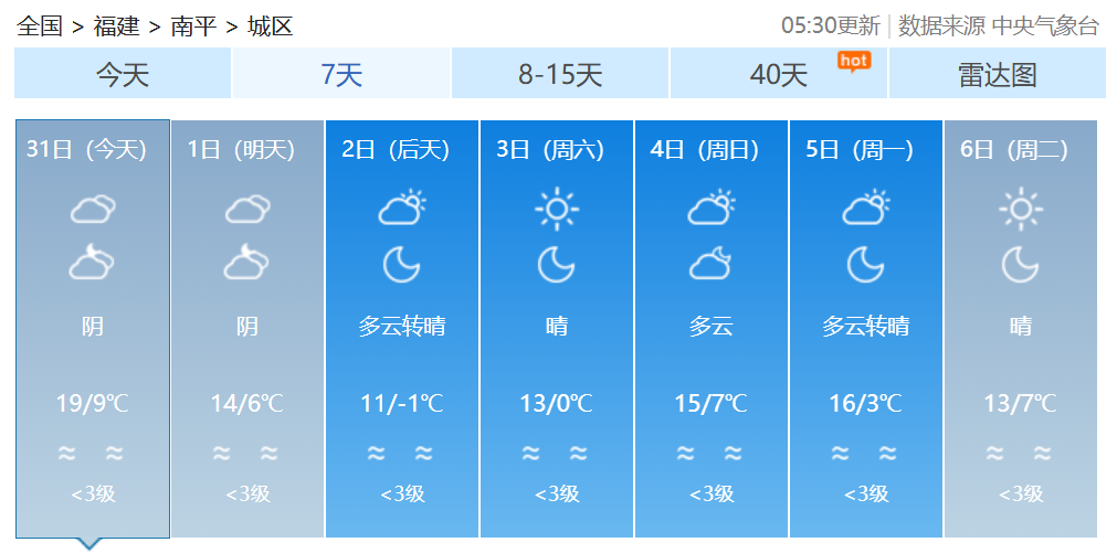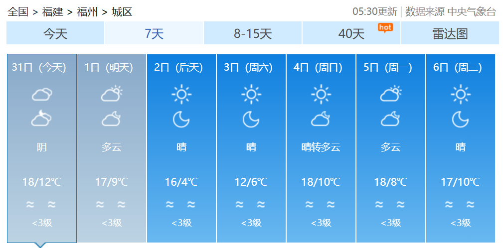受强冷空气影响,全省气温从1月1日开始将明显下降,最低气温过程降幅可达7~13℃,内陆的部分和其余的局部县市将出现寒潮天气。最低气温出现在3~4日,西部、北部地区部分城区可达-5~0℃,有结冰;中南部沿海县市城区4~8℃,其余地区城区-1~4℃,有霜冻或结冰。