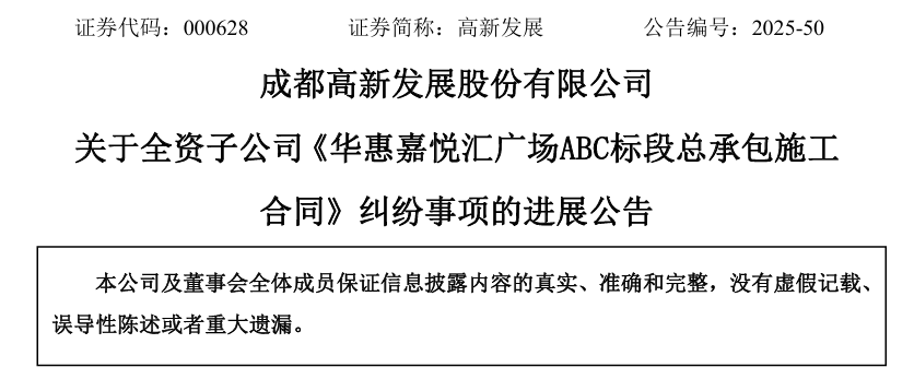 12月30日,高新发展(000628)发布公告,披露其全资子公司成都倍特建筑安装工程有限公司(以下简称“倍特建安”)与成都嘉华美实业有限公司(以下简称“嘉华美公司”)的《华惠嘉悦汇广场ABC标段总承包施工合同》纠纷最新进展。据记者梳理,该纠纷最早可追溯至2020年。