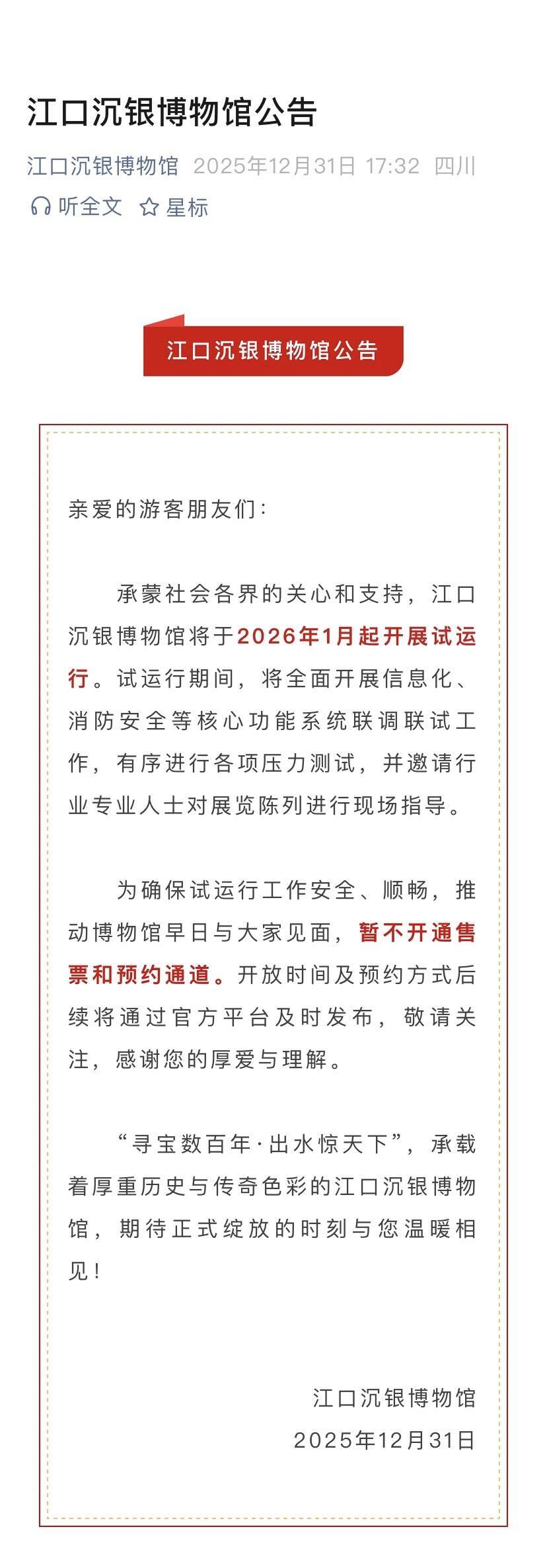沉银宝库,惊世亮相。12月31日,川观新闻记者从江口沉银博物馆官方账号获悉,江口沉银博物馆将于2026年1月起试运行,这也标志着全国唯一一座以金银器为主题的博物馆正式建成。