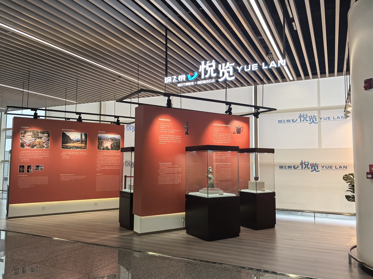 而旁边的“悦览”博物馆,则精选了6件极具代表性的绵阳地域文化元素文物复制件进行展示,包括东汉陶说唱俑、东汉陶庖厨俑、东汉陶舞蹈俑、明大彬仿古款莲子紫砂陶壶、西汉人体经脉漆木模型、东汉站姿陶狗等。每一件文物都承载着绵阳的历史记忆与文化基因,旅客在候机之余便能近距离感受绵阳深厚的历史底蕴与独特的地域文化,让更多人通过方寸展馆初识绵阳、向往绵阳。“我们今后将不定期更换这里的展品,让更多具有绵阳特色的文物在这里与旅客们见面。”绵阳市博物馆相关负责人表示。