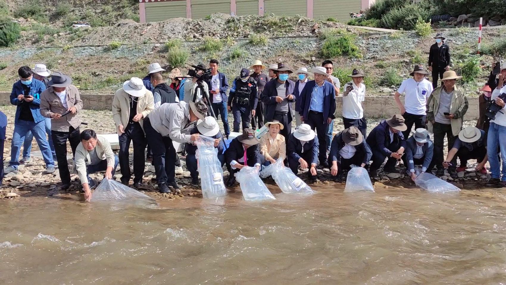 2022年开展的川陕哲罗鲑栖息地种群重建活动。四川省农业农村厅供图