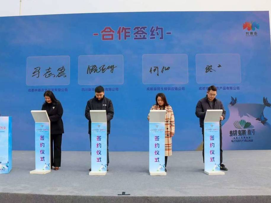 当天,蝴蝶村进行“美丽经济”推介,并举行三轮“甜蜜产业”签约,涉及供应链合作、校企联动到婚庆产业协同发展等。