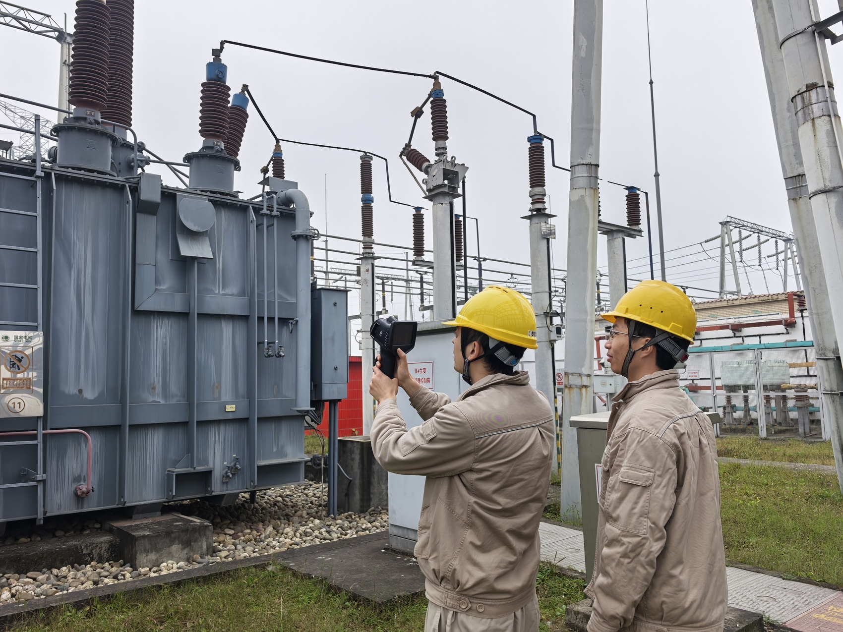 国网遂宁供电公司工作人员正在对设备进行全面检查