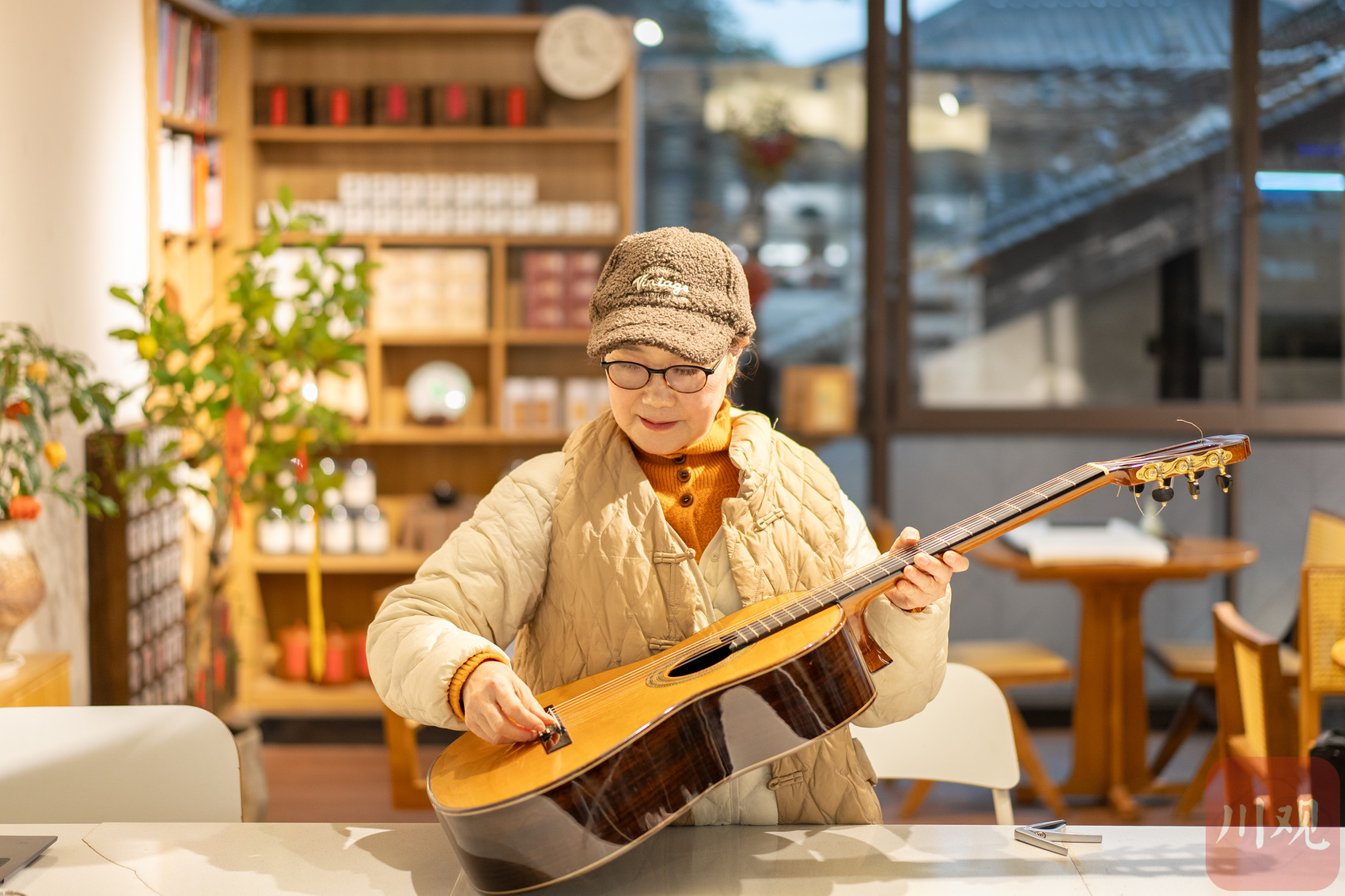 谈及校园生活,唐敏难掩期待:“川音的金钱板、和声学等专业课程,都是我一直想系统学习的内容。”按照专业两年半的学制规划,她希望通过系统深造精进演奏技巧,更定下了一个浪漫目标——“争取在80岁时举办一场属于自己的吉他音乐会”。