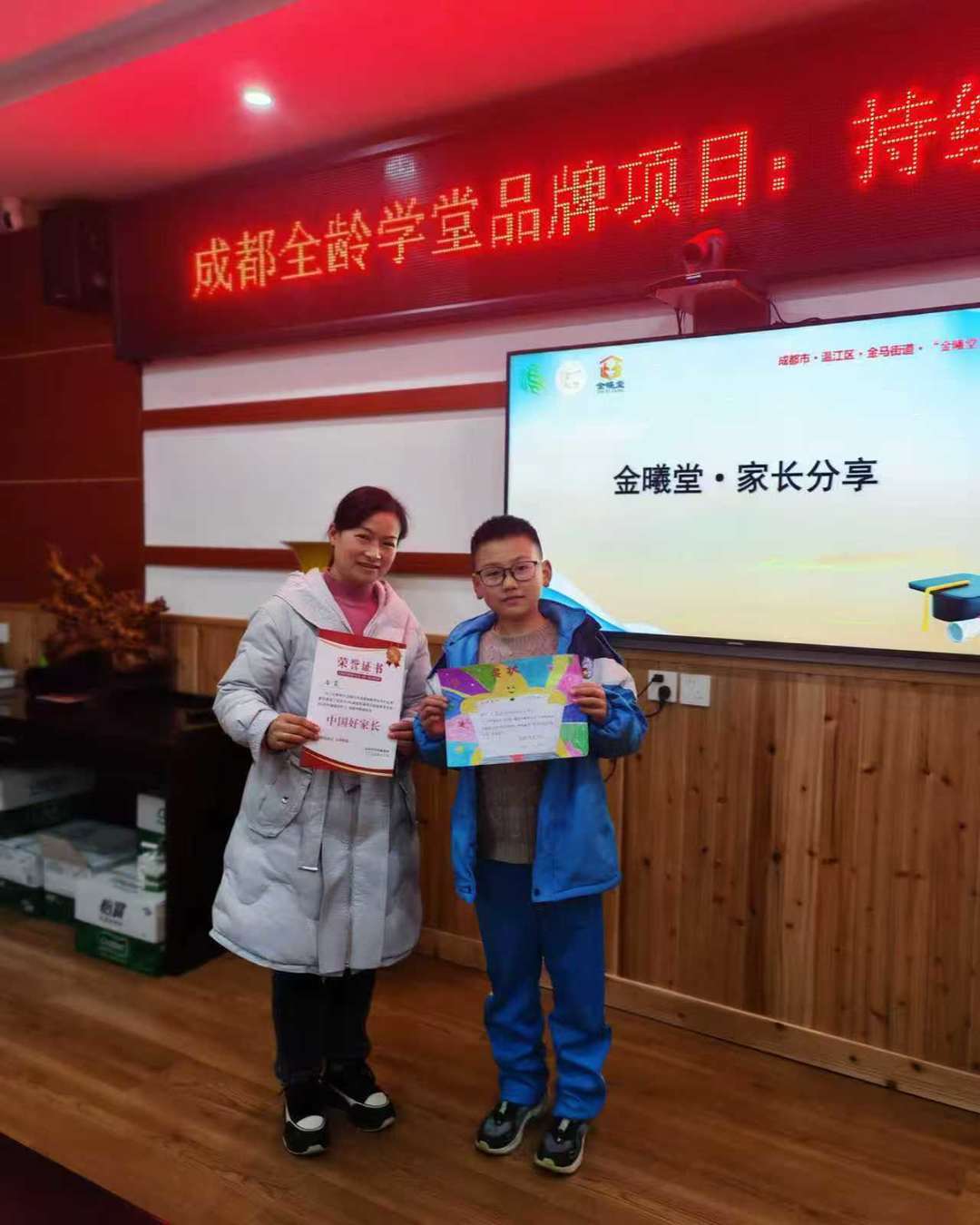 本期“金曦堂”家长夜校通过系统课程教学与生动实践活动,有效推动了家长教育理念的转变与亲子关系的优化,充分彰显了“家校社”协同育人模式的扎实成效。金马街道社区教育学校校长王亿刚为本期优秀家长代表颁发荣誉证书,呼吁优秀家长发挥示范辐射作用,将所学的家庭教育理念与方法传递给更多家庭,携手构建“家校社”协同发力、共同支持孩子全面成长的良好生态。