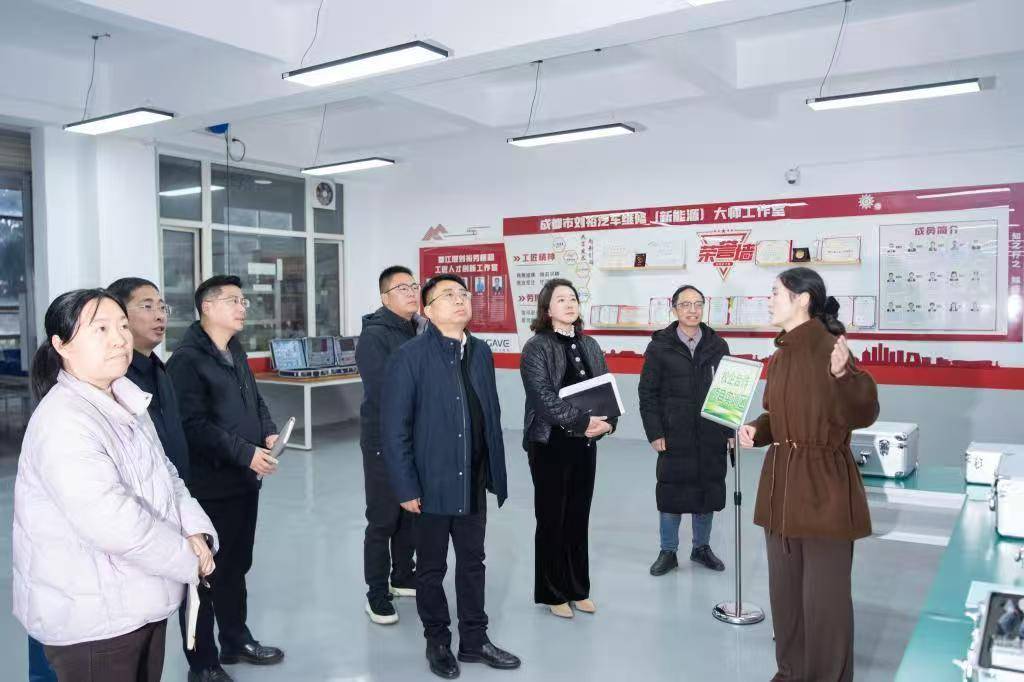 签约仪式结束后,高雷一行实地参观了四川工商职院碳达峰碳中和技术学院新能源汽车实训中心、智能制造与信息工程学院智能制造创新中心及设计艺术学院展厅,详细了解学院实训教学条件、科研平台建设及相关专业发展情况,并就后续合作细节展开深入交流。