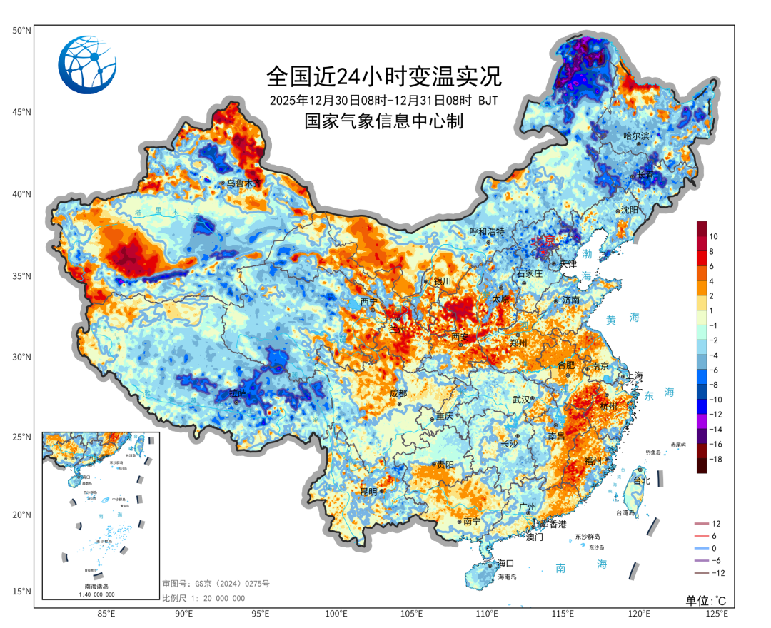 2025年最后一天,冷空气、雨雪接连上线。气象监测显示,受冷空气影响,内蒙古、东北地区、华北北部气温继续下跌,31日早晨较30日早晨,内蒙古东北部、黑龙江西北部局地降温幅度达12℃以上。