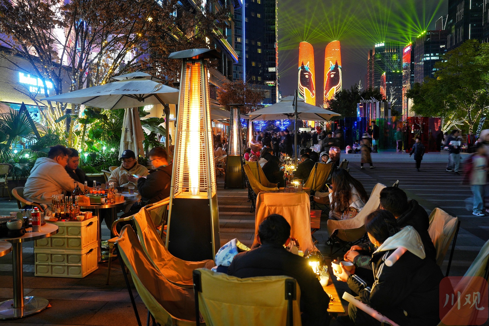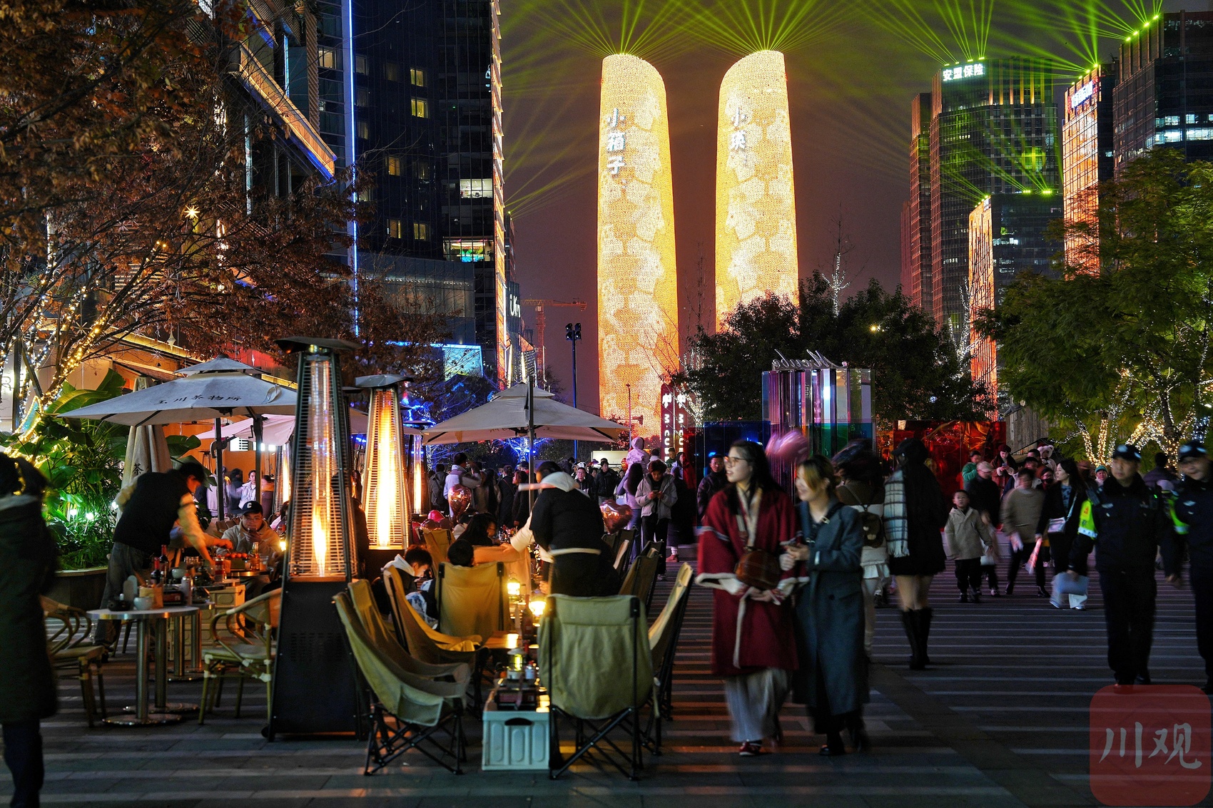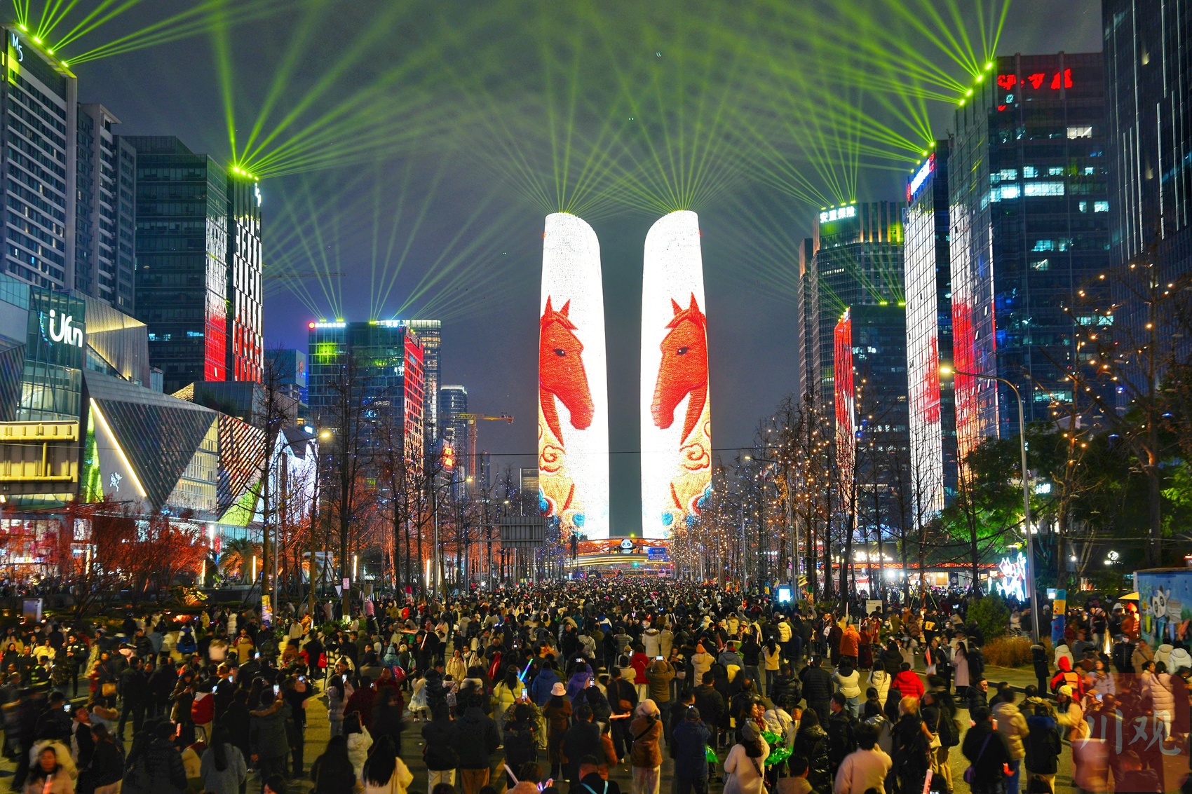 市民们聚集在交子大道观赏灯光秀,共同迎接2026年的到来 。