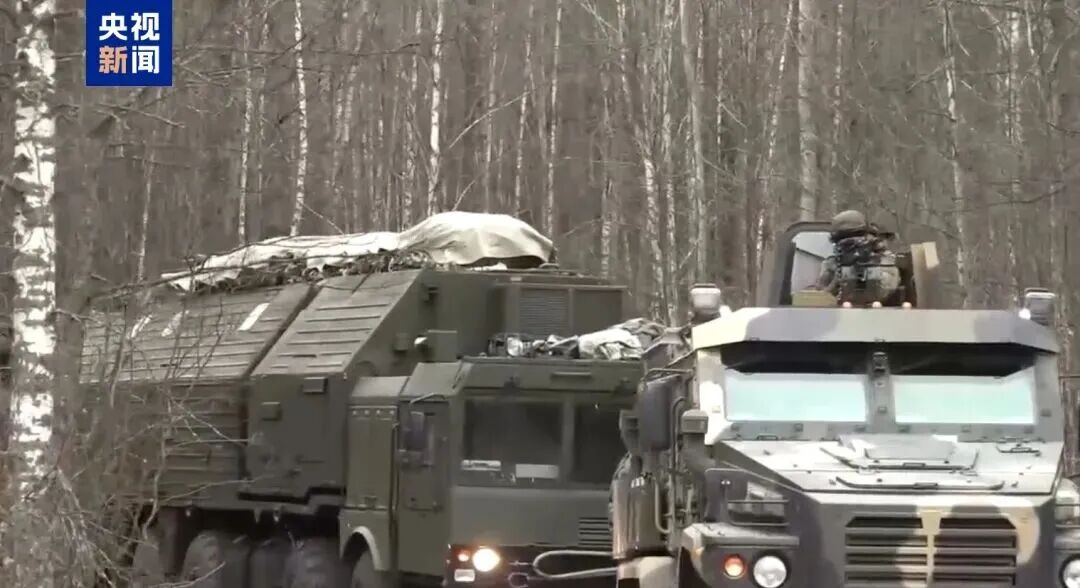 英国《卫报》30日报道称,在俄国防部公布的视频中,“榛树”导弹在一片积雪覆盖的森林中缓慢行进。画面中可见士兵使用绿色伪装网遮蔽作战车辆,并在白俄罗斯东部、靠近俄罗斯边境的一处空军基地升起旗帜。