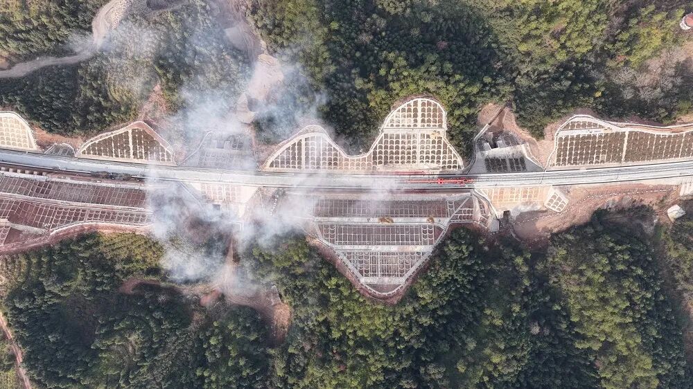 值得关注的是,瑞梅铁路江西段是典型的山区铁路,桥隧比高达73.86%,需穿越赣南断裂带、溶洞群等复杂地质区域,沿线还广泛分布稀土矿采空区、人为坑洞及危岩碎石,施工安全风险与组织难度极大。此前,施工团队已成功攻克多项技术难关,全线最长桥梁绵水特大桥完成架梁、重点控制性工程华星村隧道实现贯通,为铺轨工作顺利开展筑牢了基础。