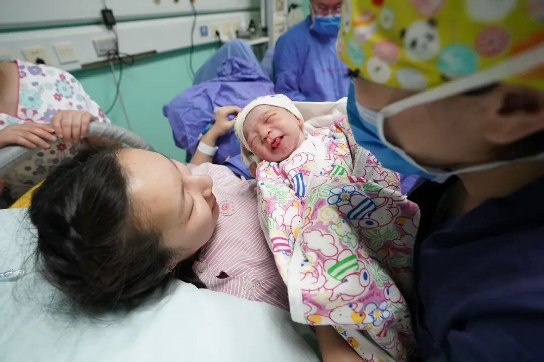 “新年宝宝”头发乌黑,小脸圆润。哭声一阵接一阵,格外响亮有力。“这大嗓门,门外她爸爸都能听见!”听到助产士笑着打趣,刚经历完分娩疲惫的妈妈周梦薇,嘴角漾开了一丝温柔的笑意。