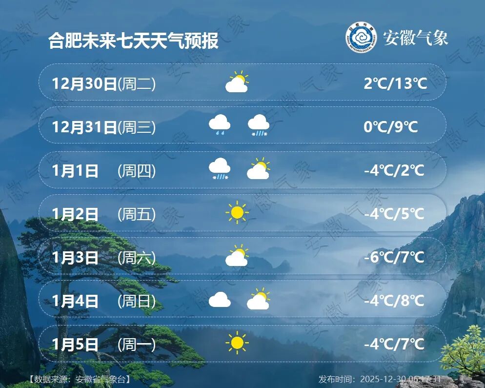 冷空气过后,2日大别山区最低气温-7~-5℃,沿江江南南部-4~-2℃,其他地区-5~-3℃。请注意防范!