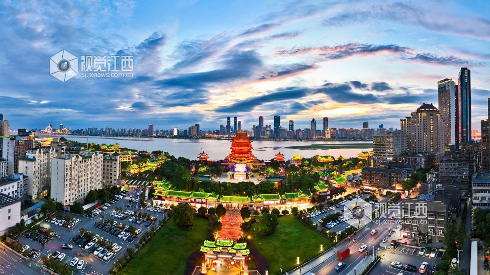 南昌滕王阁在晚霞的映衬下美如仙境。 大江新闻全媒体记者 徐国亮 摄