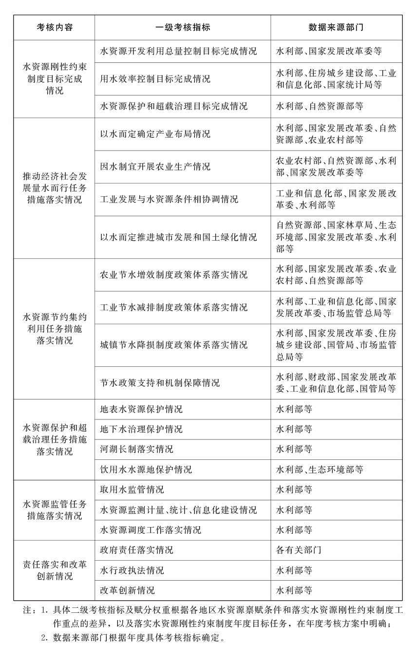 落实水资源刚性约束制度考核内容与指标