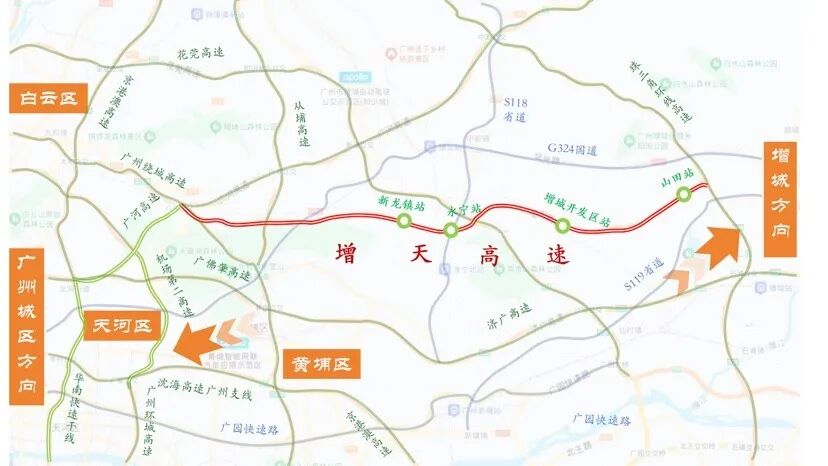 作为广东省高速公路网的重要加密联络线,增天高速自东向西串联起增城、黄埔、天河、白云四大区域,通车后将实现增城与广州中心城区便捷互达,有效缓解广州东西向交通压力,有力促进广州东部中心“现代活力核”功能提升,进一步提高广州内联外通水平,为粤港澳大湾区基础设施“硬联通”再添有力支撑。