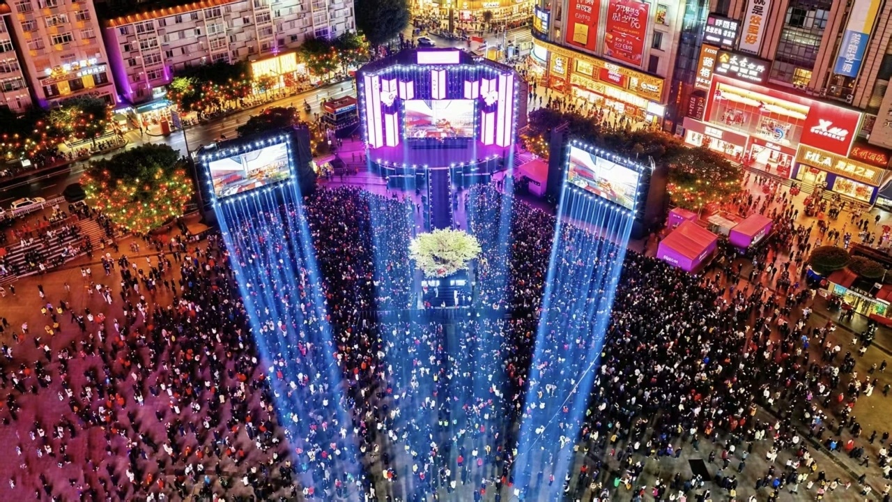 2025年12月31日晚,达州通川区中心广场流光溢彩、人潮涌动,“迎新年 庆新春 乐购嘉年华”暨“潮涌达州 爱满通川”2026年跨年音乐会在此举行。活动自19时30分启幕,持续至2026年元旦凌晨,以音乐与激情陪伴市民喜迎新年。