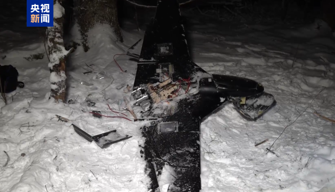 俄国防部公布视频截图:被击落的乌克兰无人机残骸