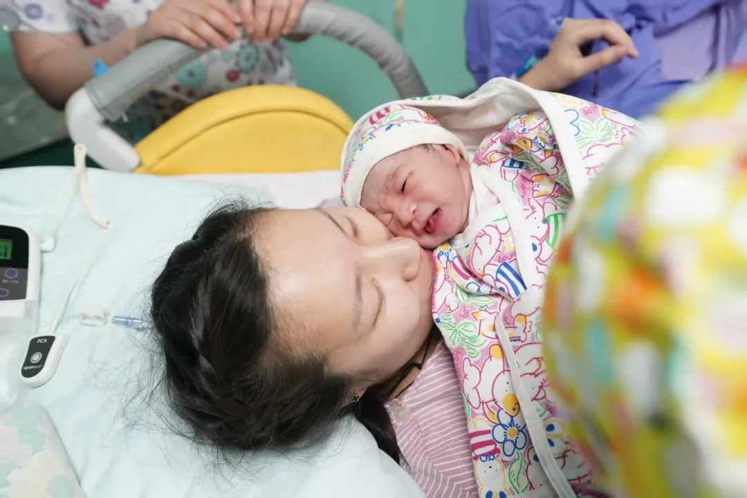 “来,深吸气,屏住,用力!”“很好很好!”“坚持住!”……分娩室里,助产士们有条不紊地引导、鼓劲,一双双温暖的手或轻抚、或握紧,传递着支持。终于,在众人的期盼中,那声宣告新生命的啼哭如期而至。