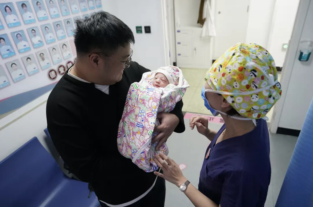 “新年宝宝”头发乌黑,小脸圆润。哭声一阵接一阵,格外响亮有力。“这大嗓门,门外她爸爸都能听见!”听到助产士笑着打趣,刚经历完分娩疲惫的妈妈周梦薇,嘴角漾开了一丝温柔的笑意。