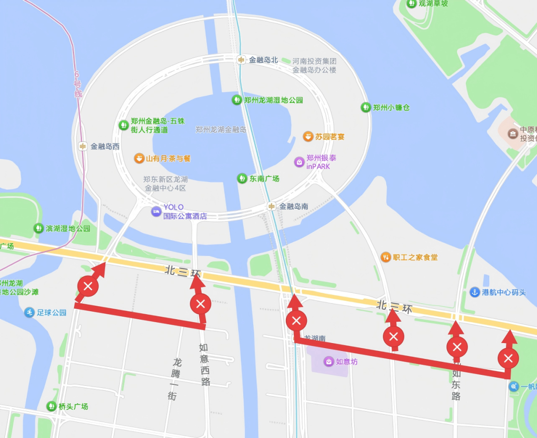 7.北龙湖金融岛(北三环众意路至九如路、九如路北三环至金融岛、如意西路北三环至金融岛路);