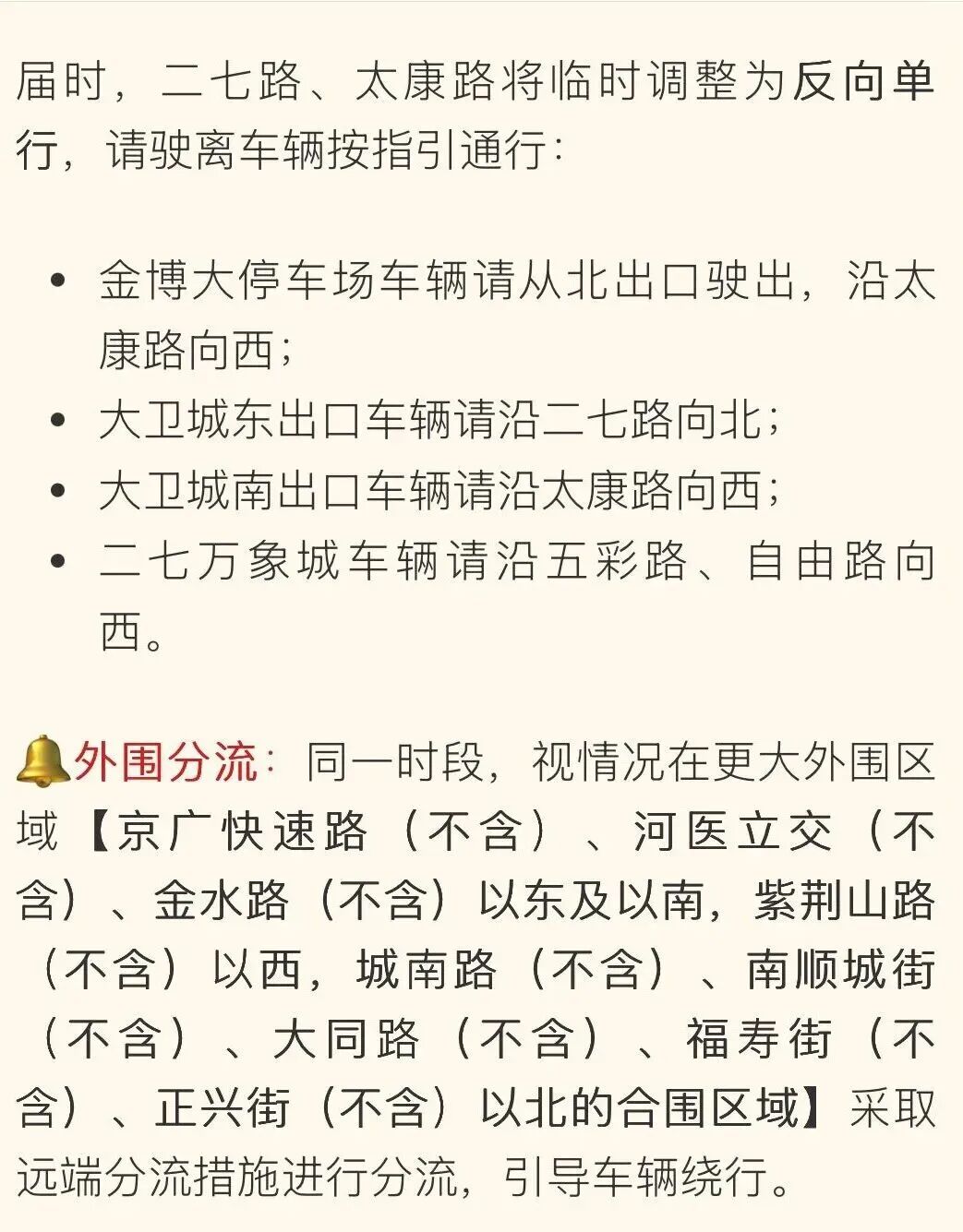 5.中州大道与金城大道交叉口东侧北100米至贾鲁河段辅道封闭施工,机动车禁止通行。