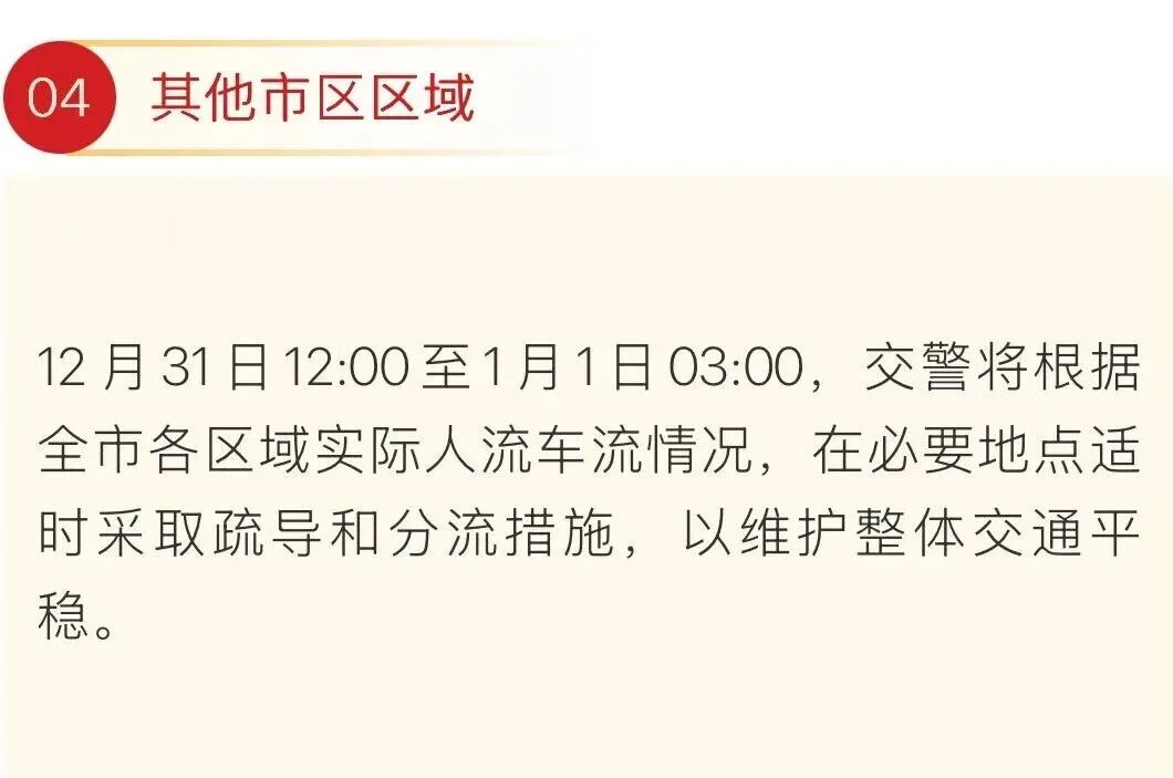 提升主干线路运力。2025年12月31日,地铁1号线晚超高峰最小行车间隔压缩至2分半;2号线与城郊线小交路调整为刘庄站至南四环站,小交路行车间隔约3分钟,其他区段行车间隔约6分钟,节前一天暂停开行快车;4号线晚高峰最小行车间隔压缩至5分钟;6号线晚高峰小交路调整为奥体中心西站至清华附中站,小交路行车间隔约5分钟,其他区段行车间隔约10分钟;其他线路行车间隔与工作日保持一致。