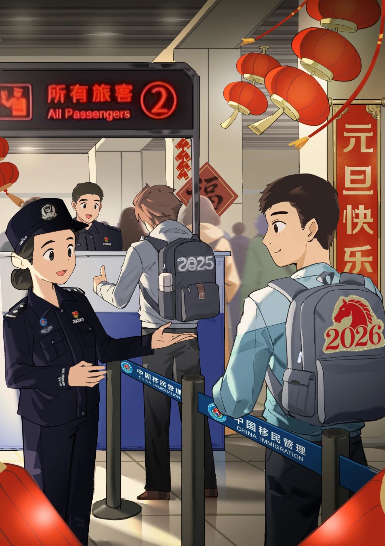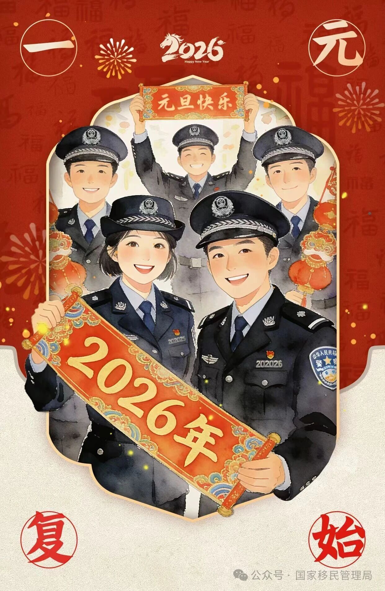 新年的钟声叩响晨光,2026年的第一章在薄雾中铺展。长夜渐短,光阴渐长。愿你在往后徐徐铺展的时光里,心有熹光,步履从容;门庭温暖,眉目舒展。新的一年,你我皆如初春的种子,静默扎根,肆意生长——岁岁安澜,事事圆满,新元安康,万象同辉。(漫画:浙江边检总站 王颢烨、珠海边检总站 曾晓蕾、深圳边检总站 彭敏菱、江苏边检总站 陈颖 张边轩 毛楷文)