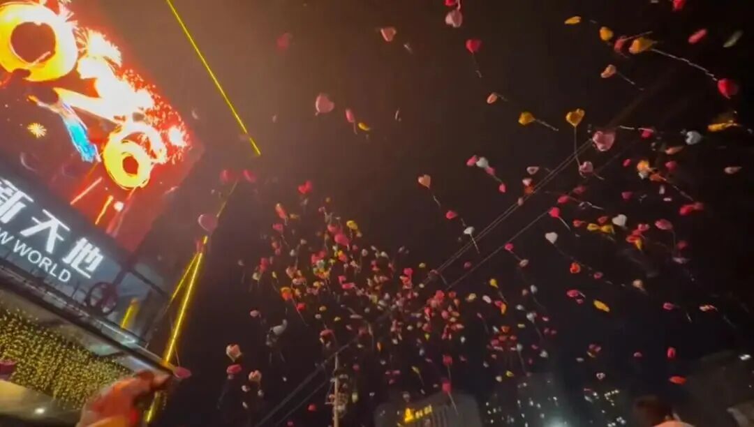2026年1月1日,陕西汉阴县“文景新天地购物中心跨年活动突然停电”的网帖引发热议。视频显示,众人在商场门前喊完倒计时并放飞气球几秒后,空中电线冒出火花,突然停电。当地多名网友在社交平台提到,疑因气球触碰电线停电,其中有人称放飞的疑是氢气填充的气球。