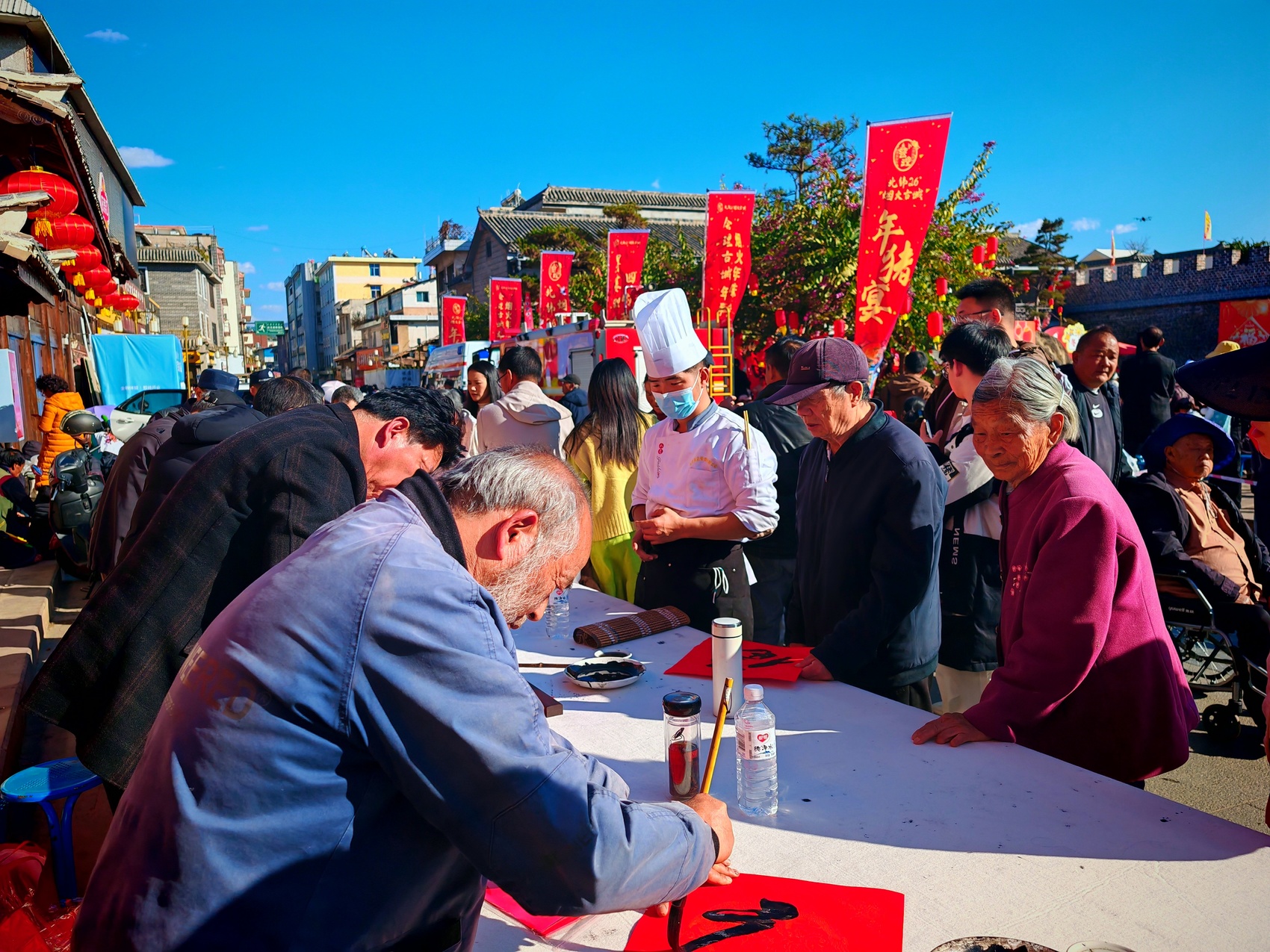15时,锣鼓喧天,年猪巡游将活动来了。八名壮汉抬着身披红绸、膘肥体壮的年猪,在舞龙和小狮子的簇拥下,沿古城核心路线巡游,引得沿途游客、群众纷纷驻足拍照。“头一回在古城里看到这么热闹的年猪巡游活动,整个人都被这股喜庆劲儿感染了。”来自外地的游客刘女士赞叹。巡游队伍所到之处,掌声、喝彩声此起彼伏。