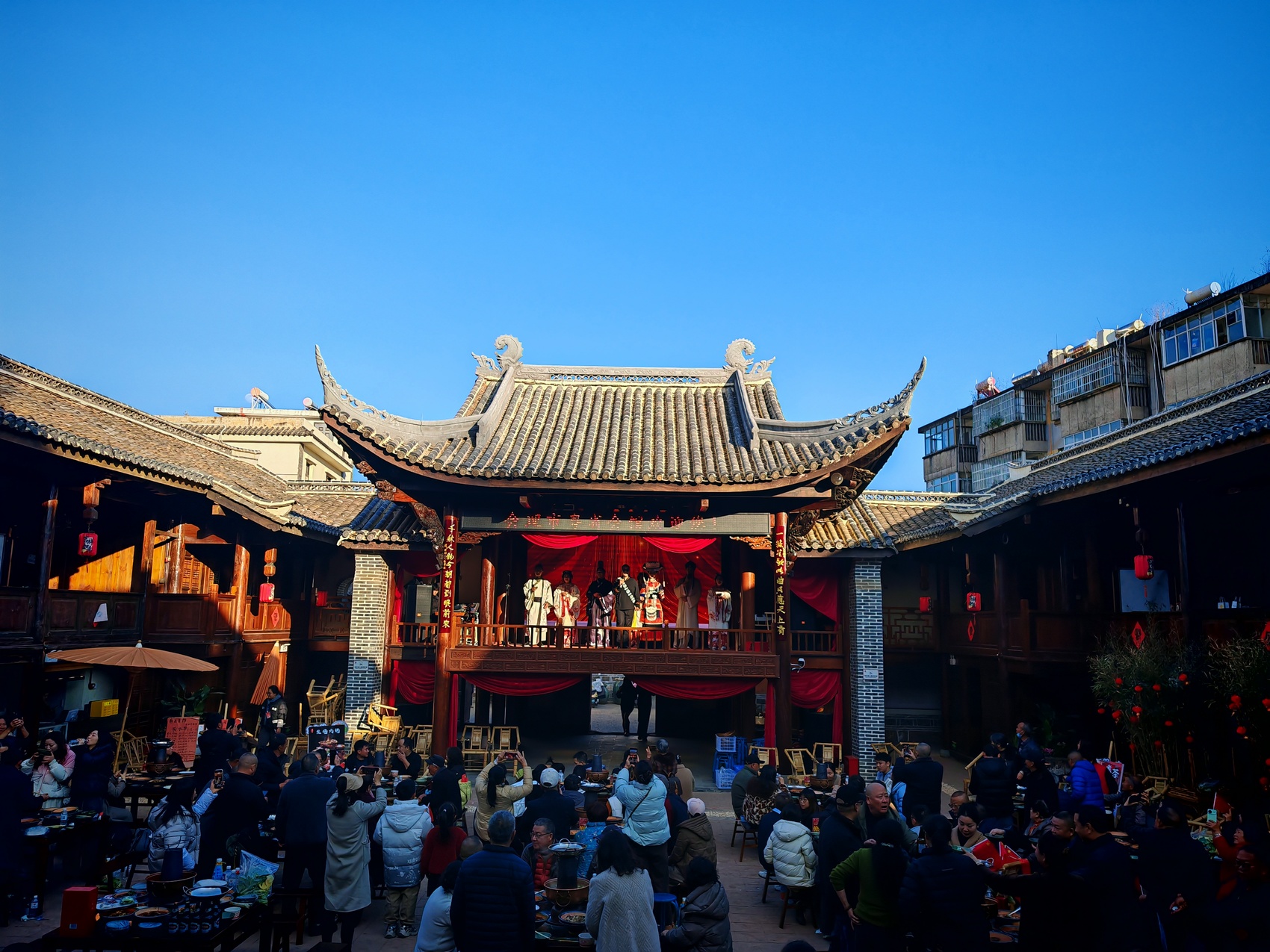 “百桌年猪宴”迎新年。李鹏摄