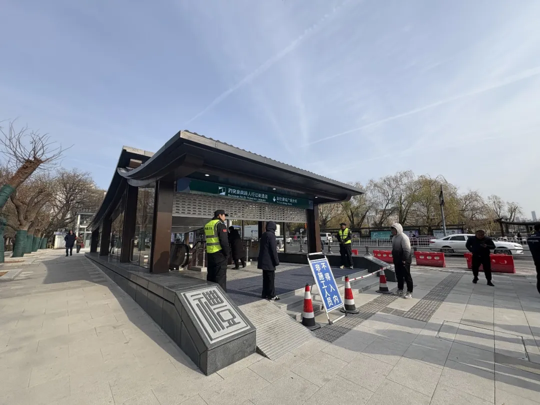 记者在现场看到,通道两端出入口卷帘门全部开启,自动扶梯平稳运行,照明、通风等设施正常运转,市民游客有序进出通道,实现了两大核心景区的地下安全通行。