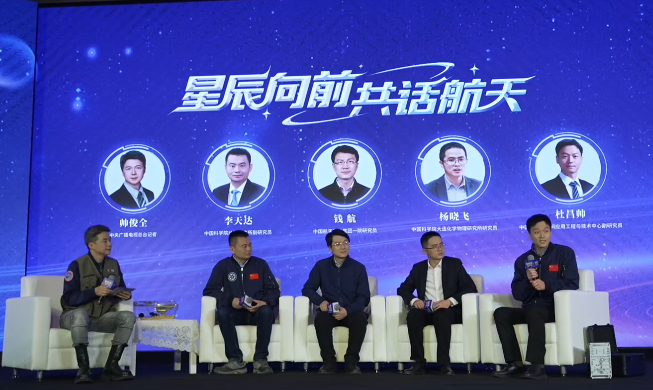 在“星辰向前,共话航天”对话环节,中国科学院动物研究所副研究员李天达、中国航天科技集团一院研究员钱航、中国科学院大连化学物理研究所研究员杨晓飞、中国科学院空间应用工程与技术中心副研究员杜昌帅,四位青年科技工作者向大家透露了很多不为人知的航天趣事。