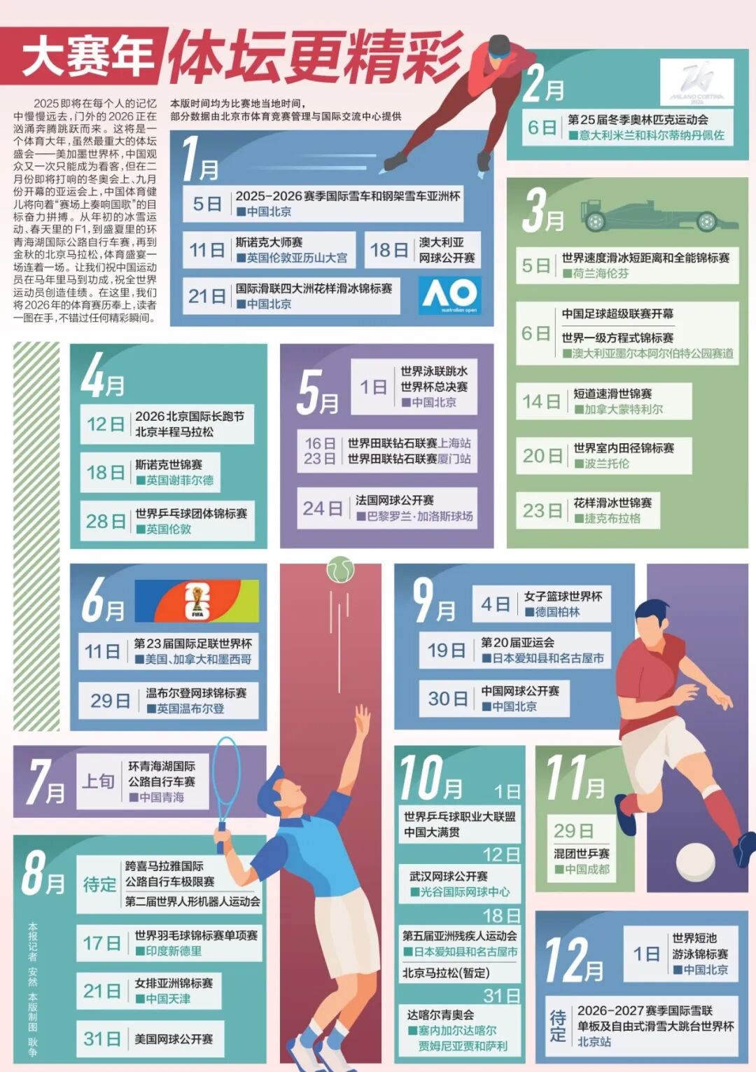 让我们祝中国运动员在马年里马到功成,祝全世界运动员创造佳绩!在这里,我们将2026年的体育赛历奉上,希望您不会错过任何精彩瞬间。