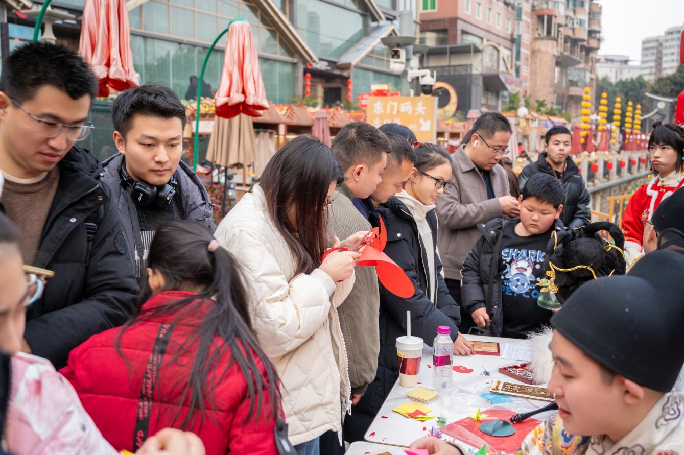 特色主题游船也是亮点之一:东门码头仙境游、MR主题游船等吸引大量游客争相体验;音乐广场码头的蜀味锦江特色餐游船,融合了地道巴蜀风味与跨年盛宴,让食客在烟火氤氲中尽享舌尖上的美味;城南段鹭栖船宴特色餐船,则将城南段时尚光影与高端私享体验相融,为宾客提供别具一格的新年雅集。东门码头游客服务中心的工作人员介绍,活动期间推出的“岁末合家欢”特惠套票反响良好,“很多家长都特意带孩子来体验这份独特的新年仪式感。”