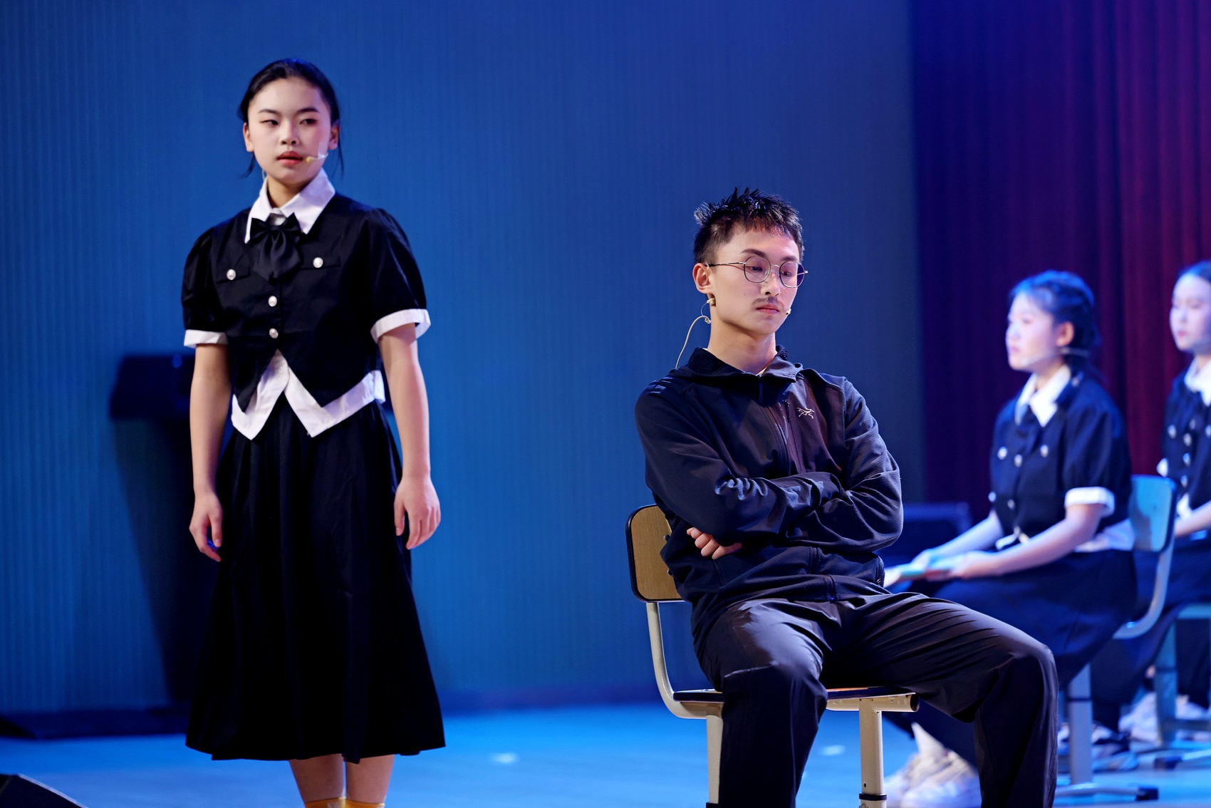 当晚的8出剧目均围绕成长主题展开,有笑有泪。《哈姆雷特·迷宫》以“信任”为核心,让学生在自由表达中深化了人际信任;《旗手》突破“重复演绎”的固有模式,以青春视角完成经典重塑,实现了从“接受”到“创造”的转变;《红楼梦中见本性》因男同学主动挑战反串刘姥姥与贾母的角色设计成为全场焦点,展现了学生突破性别与角色边界的勇气。