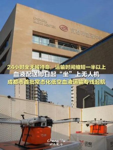 打通血液配送“低空生命线”,成都低空运输血液配送项目首飞成功!#血液配送 #无人机 #高科技 #成都