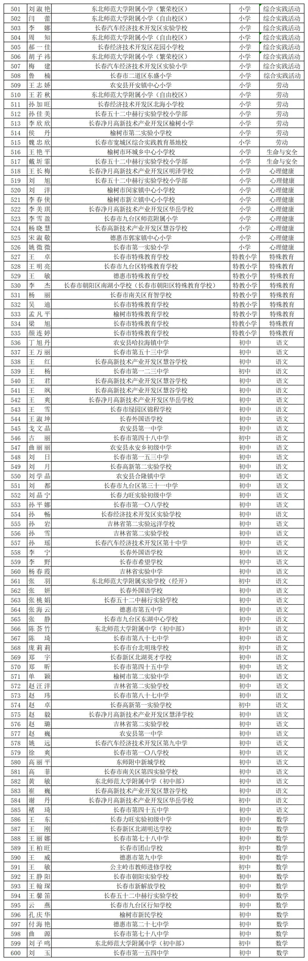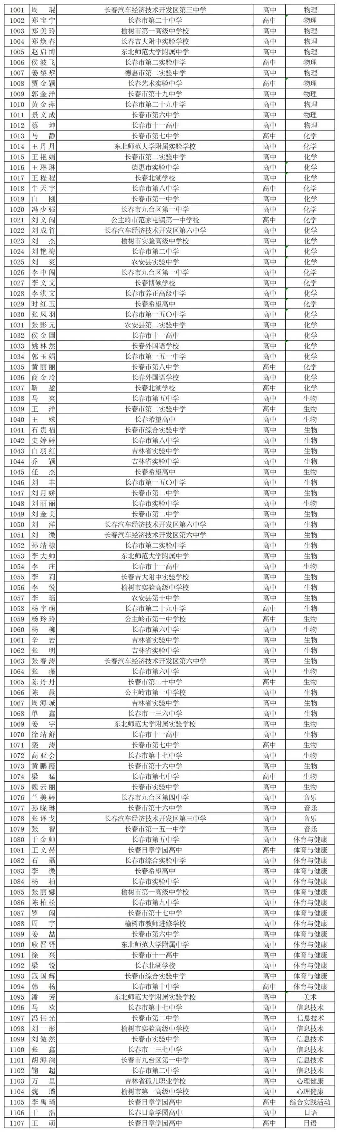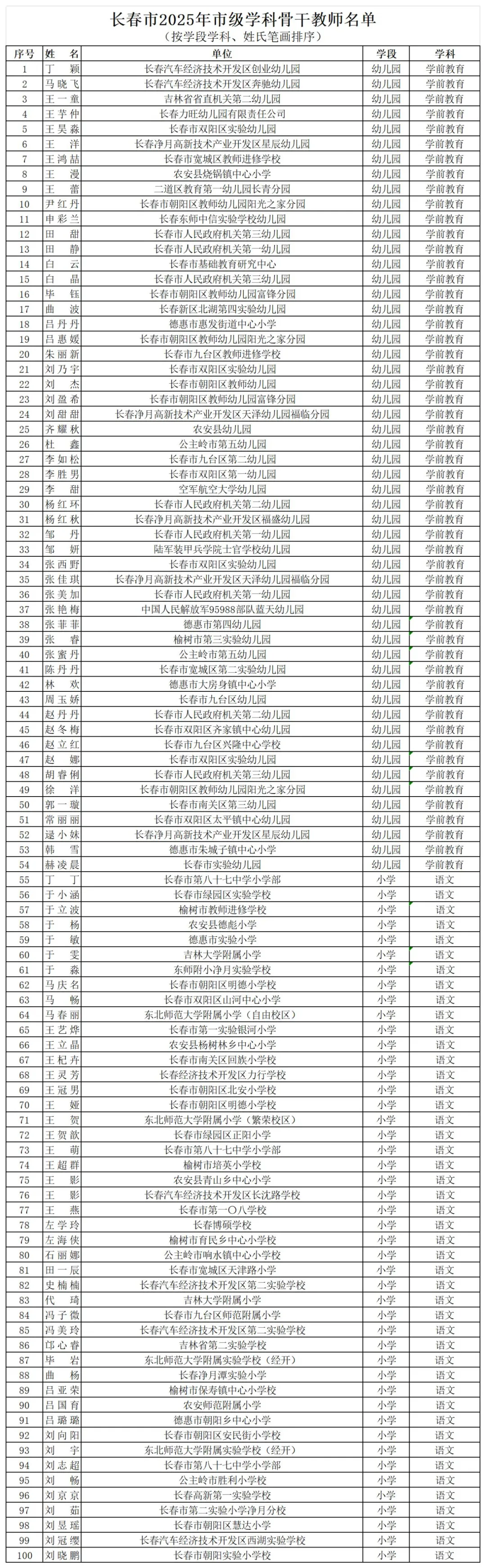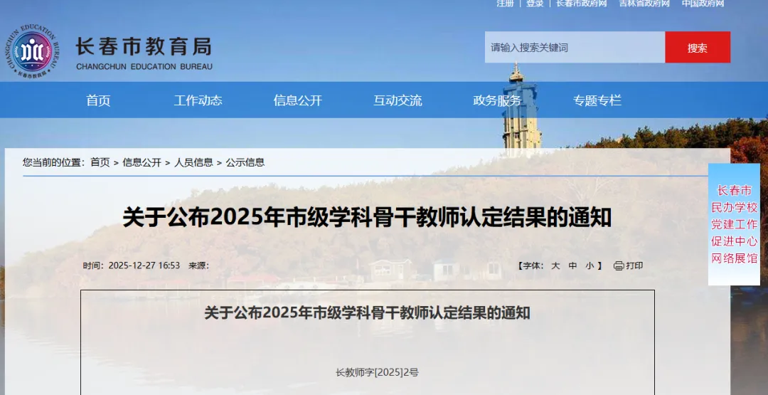 日前,长春市教育局网站发布2025年市级学科骨干教师名单,认定丁颖等1107名教师为长春市2025年市级学科骨干教师,颁发骨干教师证书。具体如下: