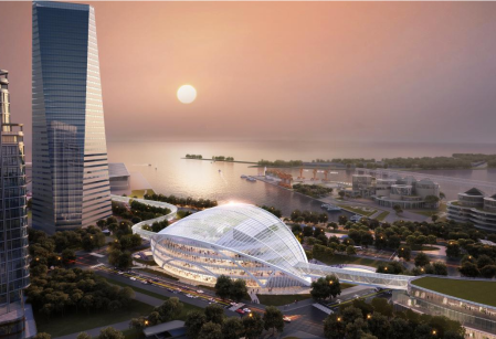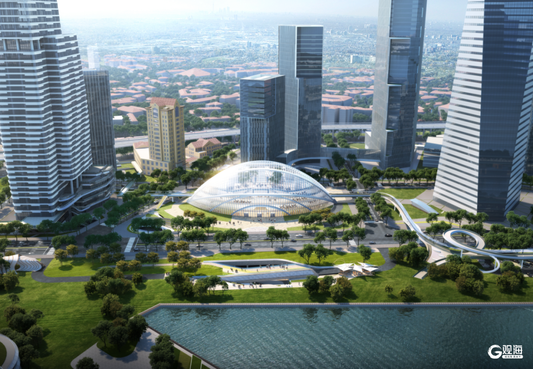 值得关注的是,该项目不仅是国际邮轮港区重要的标志性建筑,更被列入“十四五”国家级综合客运枢纽重大项目,地下将建设交通环路系统,与地铁2号线西延段“邮轮母港站”实现无缝对接;地上通过空中连廊与邮轮母港客运中心等周边项目紧密相连,未来市民和游客可通过地铁、邮轮、公交等多种交通方式便捷抵达,实现人流高效集散,同时,结合地下空间打造集旅客服务、交通换乘等功能为一体的邮轮旅客交通集散中心。