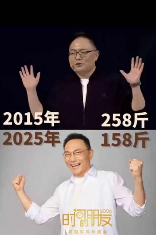 31日下午,罗振宇在社交平台分享了自己减重的过程,视频显示,2015年时,他的体重是258斤,2020年体重为237斤,2023年体重为192斤,2025年体重为158斤。