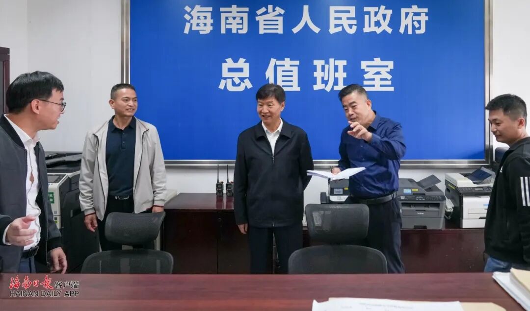 在省政府总值班室,刘小明视频查看重要交通枢纽、旅游景区等点位运行情况,并连线省公安厅、省市场监督管理局、省交通运输厅以及三亚市、东方市、文昌市、陵水黎族自治县。他指出,今年元旦是海南自贸港全岛封关后第一个重要节日。要以最高标准、最严要求,毫不松懈抓好值班值守,做到“在岗在位在状态”,有力有序保障政令畅通,及时有效处置突发情况。要以最优服务、最佳体验,切实加强节日服务保障,让中外游客宾至如归、来了还想来。要以最密防线、最实举措,坚决守牢安全底线,聚焦反走私、道路交通、工程施工等重点领域,开展隐患排查整治,做好应急处置预案,全力维护社会大局和谐稳定。要以真心真情、务实举措,关心关爱值班值守人员,科学调配值班值守力量,主动加强后勤服务保障,为大家做好值班值守工作创造更好条件。