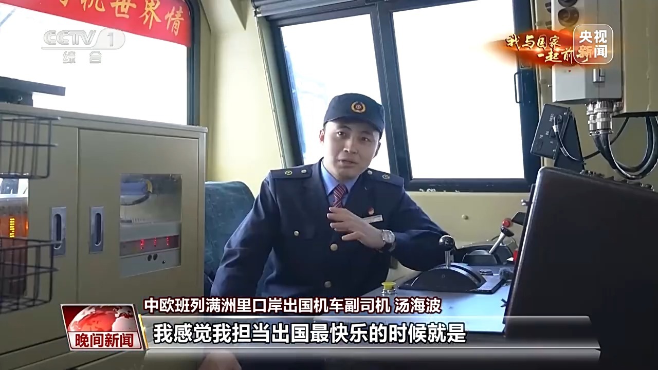 中欧班列满洲里口岸出国机车副司机 汤海波:我感觉我担当出国任务最快乐的时候就是通过国门的那一刻,那种自豪感由心而生。