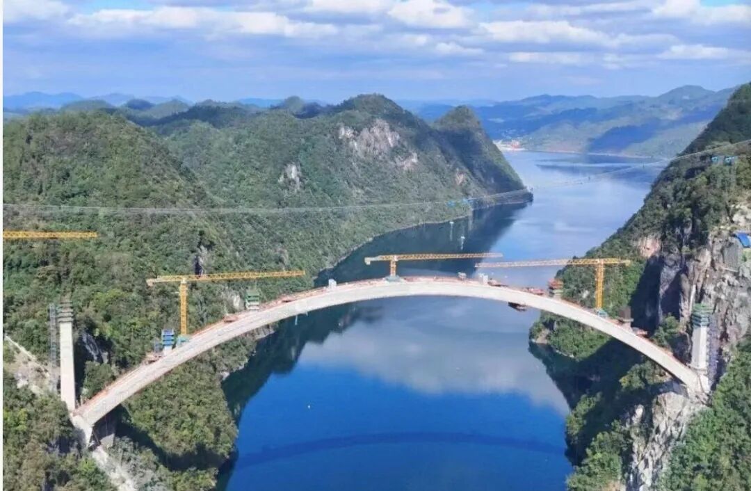 如今,乌江特大桥建设已进入冲刺阶段。这座凝聚着建设者智慧与汗水的“超级大桥”,不仅将成为国内最大跨度单线铁路混凝土拱桥,更将与上游世界悬臂跨径最大的桁架拱桥——S205省道江界河大桥形成“公铁并行、双拱辉映”的独特奇观。